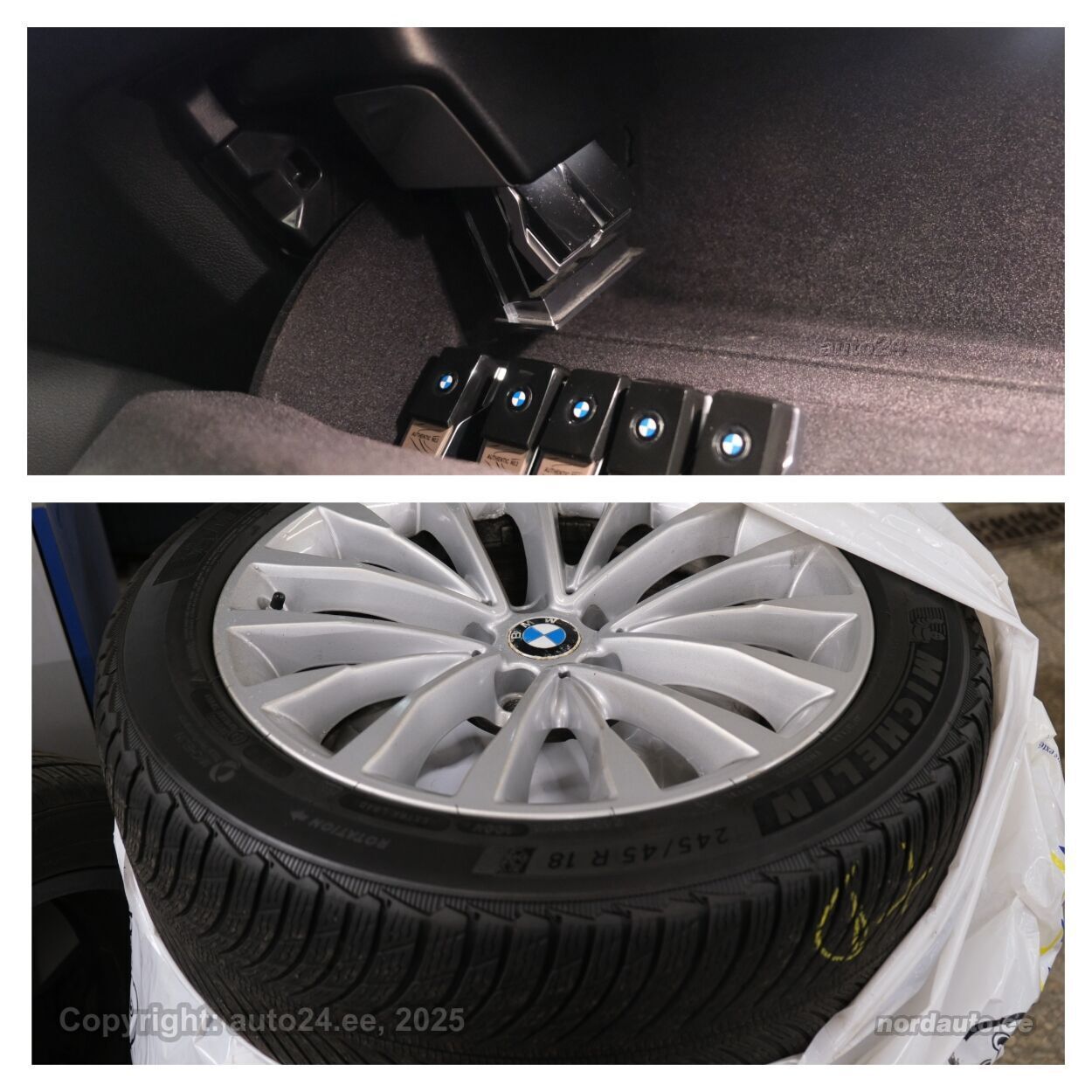 ассистент смены полосы движения, система распознавания дорожных знаков, система контроля слепых зон, противобуксовочная система, датчик дождя, ISOFIX крепитель детских сидений (сзади), автодержатель тормоза, светопакет, противотуманные фонари (задний), LED (фары дневного света, задние фары, ближнего света, дальнего света), автоматическое включение фар, ассистент переключения дальнего света, адаптивные фары поворота, летняя резина, литые диски (18"), вместе с автомобилем впридачу (зимняя резина (всесизонные шины), литые диски), система контроля давления в шинах, регулируемый руль (по высоте и глубине, электрически, с памятью), многофункциональный руль, руль обшитый кожей, руль с отеплением, переключение скоростей с руля, Harman/Kardon стерео (гнездо для USB, оригинальное), усилитель звука, звуковые колонки, сабвуфер, Apple CarPlay, Android Auto, экран (спереди), система навигации (с картой), компьютер, система "hands free", декоративные накладки в салоне (деревянный декор), карманы в спинках передних сидений, коврики (велюровые), держатели стаканов, рукоятка переключения передач обшитая кожей, тёмная обшивка потолка, кожаная обивка, 2x электрически регулируемые сиденья (2x с памятью), регулируемые по высоте сидения (водительское сидение, пассажирское сидение), 4x обогрев сидений, спинка с регулировкой выпуклости, вентилируемые сиденья (спереди), подлокотник спереди (с ящиком), подлокотник сзади, Comfort сиденья, электрические зеркала заднего вида (с подогревом, складывающиеся), 4x электрические стеклоподъемники, тонированные стекла, круиз контроль (с удержанием дистанции до переднего транспортного средство), 2x противосолнечные козырьки с зеркалами (с подсветкой), отдельный кондиционер для задних сидений, автоматически затемняемые зеркала (в салоне, внешние), встроенное освещение в дверях, местная подсветка, датчики парковки (спереди, сзади), парковочная камера, Coming-/Leaving-Home функция, цифровая приборная панель, проекционный дисплей, беспроводная зарядка телефона, безключевой доступ, безключевой запуск, старт-стоп система, 12v электрические розетки, электронное открывание багажника, подогрев заднего стекла, показатель температуры атмосферного воздуха, очиститель заднего стекла, 4 поворотных колеса, Adaptiivne vedrustus, M Sport pidurid, Ambient Air Package - autoparfüüm |
