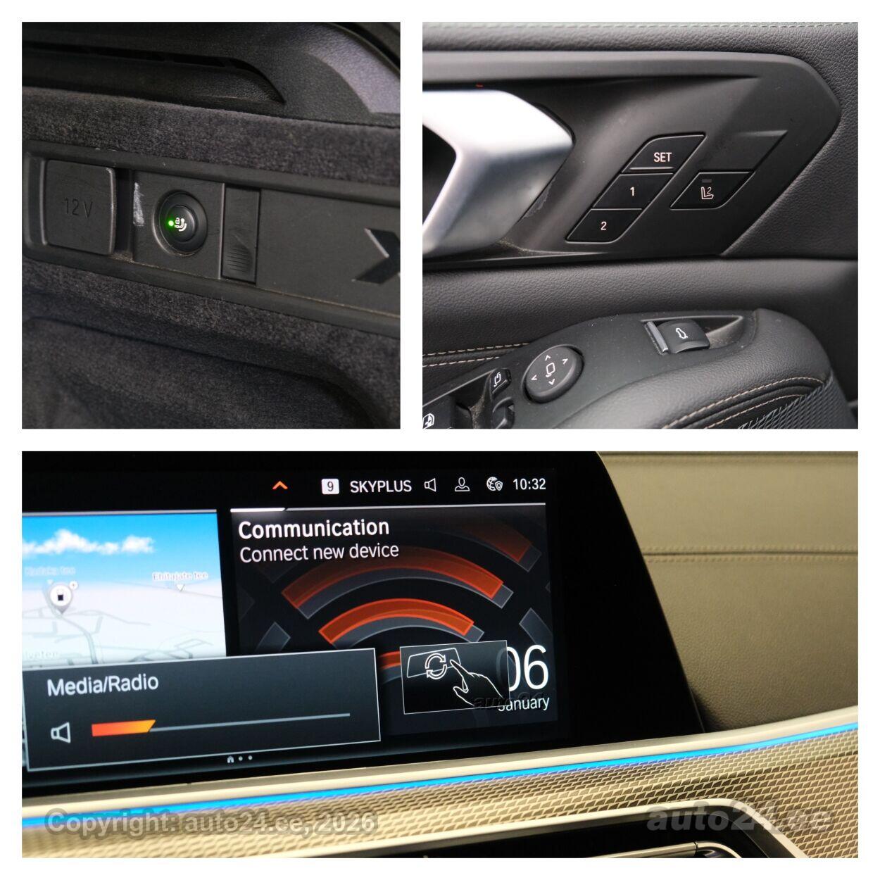 ассистент смены полосы движения, система распознавания дорожных знаков, система контроля слепых зон, противобуксовочная система, датчик дождя, ISOFIX крепитель детских сидений (сзади), автодержатель тормоза, возможность выключит воздушную подушку переднего пассажира, светопакет, противотуманные фонари (задний), лазер, LED (фары дневного света, задние фары, ближнего света, дальнего света), автоматическое включение фар, ассистент переключения дальнего света, адаптивные фары поворота, зимняя резина (ламельная резина), литые диски (20"), система контроля давления в шинах, регулируемый руль (по высоте и глубине, электрически, с памятью), многофункциональный руль, руль обшитый кожей, спортивный руль, руль с отеплением, переключение скоростей с руля, HiFi стерео (гнездо для USB, оригинальное), усилитель звука, звуковые колонки, Apple CarPlay, Android Auto, экран (спереди), система навигации (с картой), компьютер, система "hands free", декоративные накладки в салоне, карманы в спинках передних сидений, коврики (велюровые), держатели стаканов, тёмная обшивка потолка, кожаная обивка, 2x электрически регулируемые сиденья (1x с памятью), регулируемые по высоте сидения (водительское сидение, пассажирское сидение), спинка с регулировкой выпуклости, 2x обогрев сидений, вентилируемые сиденья (спереди), подлокотник спереди (с ящиком), подлокотник сзади, складывающаяся спинка заднего сиденья, Comfort сиденья, электрические зеркала заднего вида (с подогревом, складывающиеся), 4x электрические стеклоподъемники, тонированные стекла, круиз контроль (с удержанием дистанции до переднего транспортного средство), 2x противосолнечные козырьки с зеркалами (с подсветкой), Webasto подогрев мотора, автоматически затемняемые зеркала (в салоне, внешние), встроенное освещение в дверях, местная подсветка, функция автоматической парковки, датчики парковки (спереди, сзади), парковочная камера (360), Coming-/Leaving-Home функция, цифровая приборная панель, проекционный дисплей, безключевой доступ, безключевой запуск, старт-стоп система, 12v электрические розетки, электронное открывание багажника, дуги на крыше, прицепное устройство (электрический, съемное), подогрев заднего стекла, показатель температуры атмосферного воздуха, очиститель заднего стекла, BMW Laser tuled, Adaptiivne M vedrustus, Webasto |