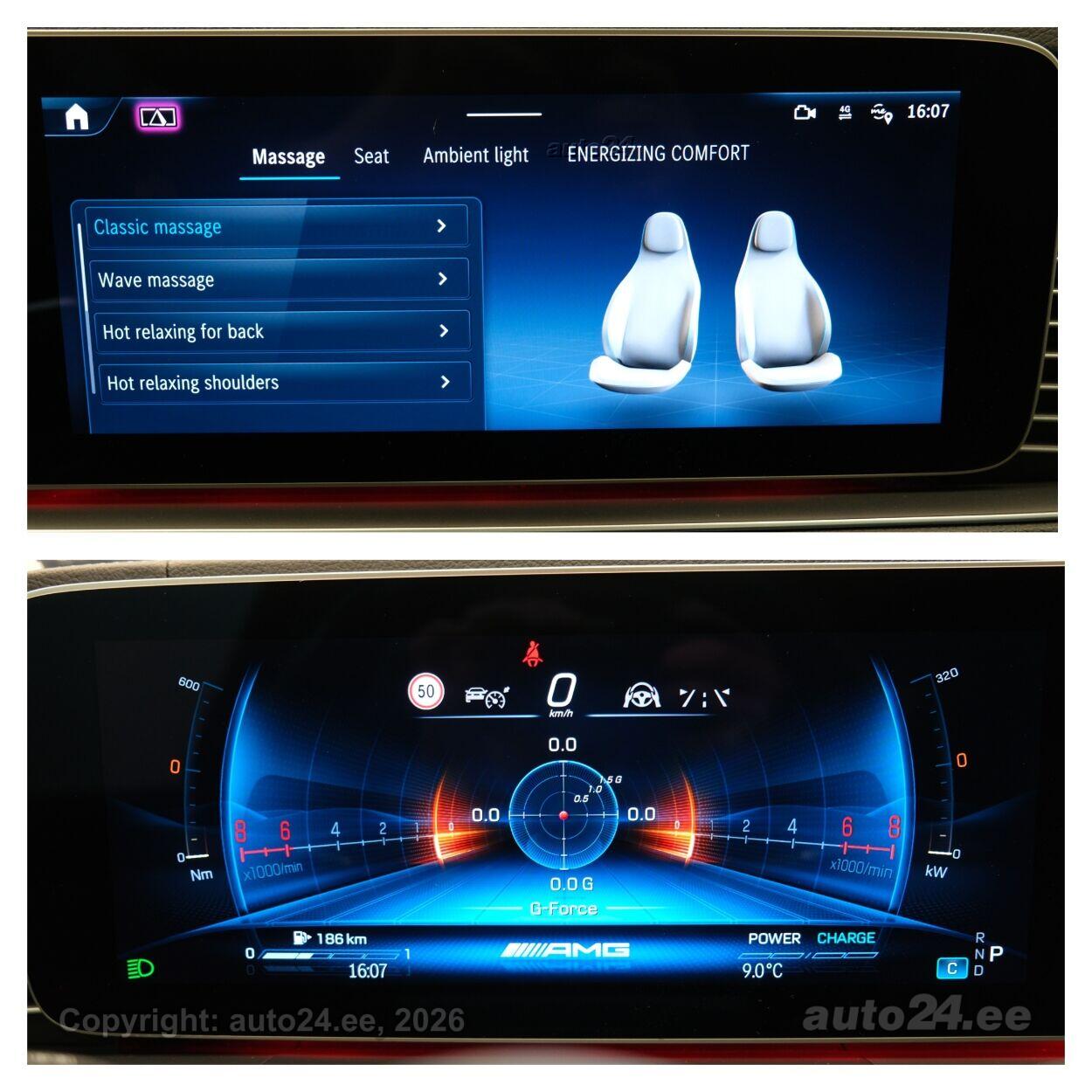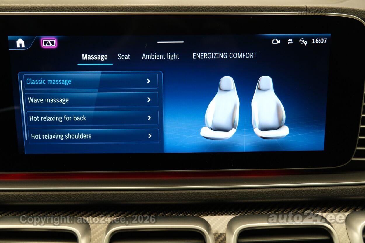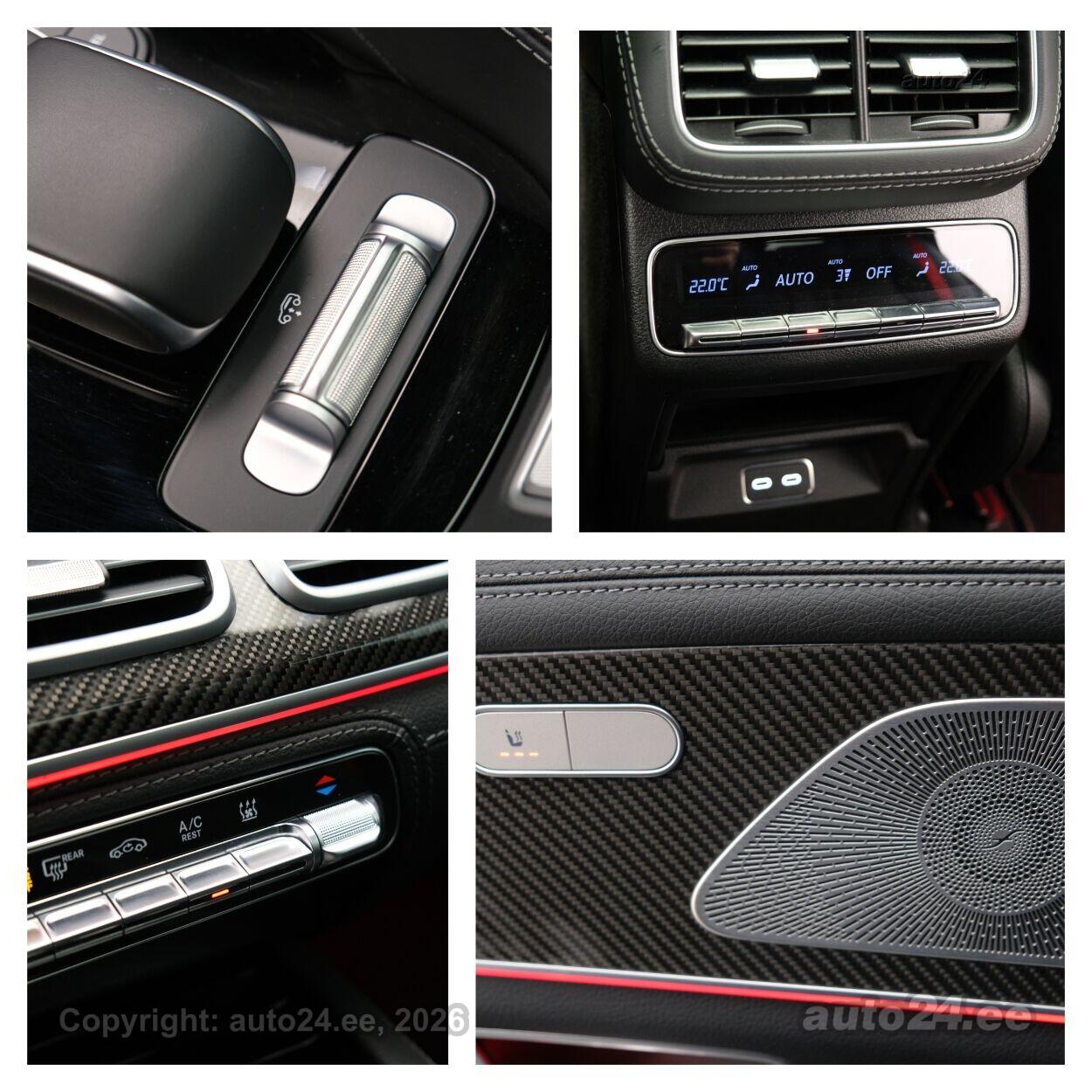 ассистент смены полосы движения, система распознавания дорожных знаков, система контроля слепых зон, противобуксовочная система, датчик дождя, ISOFIX крепитель детских сидений (сзади), возможность выключит воздушную подушку переднего пассажира, автодержатель тормоза, система распознавания усталости водителя, горный тормоз, светопакет, противотуманные фонари (задний), LED (фары дневного света, задние фары, ближнего света, дальнего света), автоматическое включение фар, ассистент переключения дальнего света, адаптивные фары поворота, зимняя резина (ламельная резина), литые диски (22", AMG), система контроля давления в шинах, регулируемый руль (по высоте и глубине, электрически, с памятью), многофункциональный руль, руль обшитый кожей, спортивный руль, руль с отеплением, переключение скоростей с руля, Burmester стерео (гнездо для USB, оригинальное), усилитель звука, звуковые колонки, сабвуфер, Apple CarPlay, Android Auto, экран (спереди), система навигации (с картой), компьютер, система "hands free", Carbon декоративные накладки в салоне, карманы в спинках передних сидений, коврики (текстильные), держатели стаканов, тёмная обшивка потолка, кожаная обивка, 2x электрически регулируемые сиденья (с памятью), регулируемые по высоте сидения (водительское сидение, пассажирское сидение), 4x обогрев сидений, спинка с регулировкой выпуклости, массирующее сиденье (водителя, пассажира), вентилируемые сиденья (спереди), подлокотник спереди (с ящиком), подлокотник сзади, складывающаяся спинка заднего сиденья, электрические зеркала заднего вида (с подогревом, складывающиеся), 4x электрические стеклоподъемники, тонированные стекла, люк на крыше (из стекла, электрический), круиз контроль (с удержанием дистанции до переднего транспортного средство), панорамная крыша, 2x противосолнечные козырьки с зеркалами (с подсветкой), подогрев мотора, отдельный кондиционер для задних сидений, автоматически затемняемые зеркала (в салоне, внешние), встроенное освещение в дверях, местная подсветка, датчики парковки (спереди, сзади), парковочная камера (360), Coming-/Leaving-Home функция, цифровая приборная панель, проекционный дисплей, беспроводная зарядка телефона, подножки, безключевой доступ, безключевой запуск, вспомогатели закрывания дверей, старт-стоп система, 12v электрические розетки, воздушная подкачка, регулируемое подвеска (жесткость, высота), электронное открывание багажника, прицепное устройство (электрический, съемное), подогрев заднего стекла, показатель температуры атмосферного воздуха, двойные стекла |